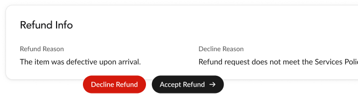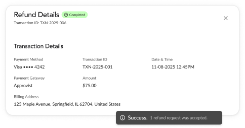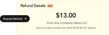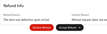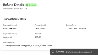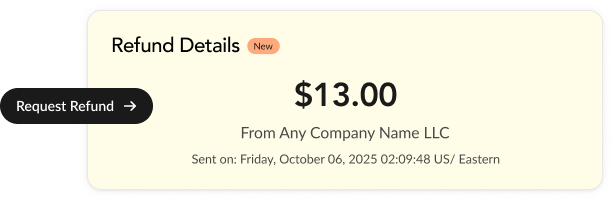 Customers can resolve issues in-platform with options like refunds, cancellations, or guided next steps without friction. Nothing hits Visa or Mastercard.